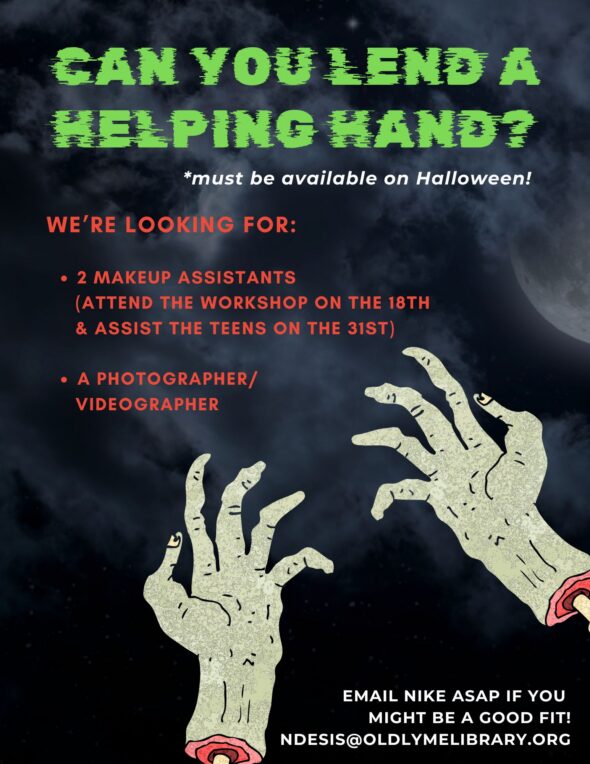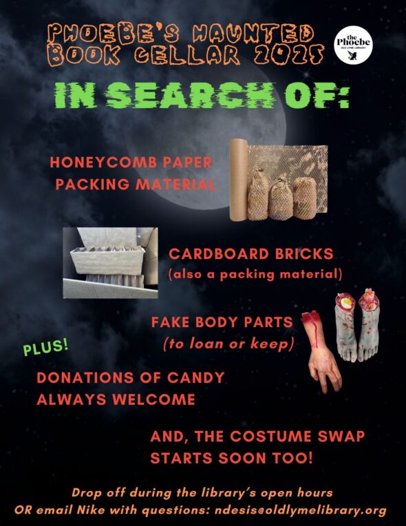 Enjoy the crowds and the spectacle when you Trick or Treat at the Library on Halloween night! Ride the haunted elevator down to the BOO-k Cellar for an evening of frights and sights hosted by the Library’s Teen Volunteers.