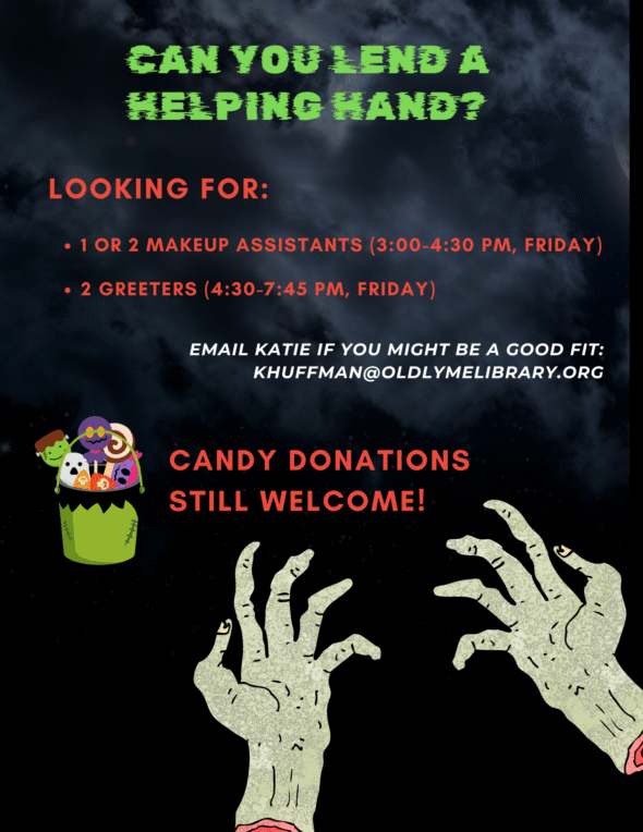 Enjoy the crowds and the spectacle when you Trick or Treat at the Library on Halloween night! Ride the haunted elevator down to the BOO-k Cellar for an evening of frights and sights hosted by the Library’s Teen Volunteers.