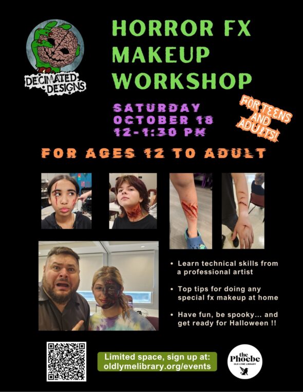 Get behind the scenes of special effects makeup. This workshop will cover hygiene, how to get started, what materials to use, how pro’s make monsters jump to life, and tricks to improve your costumes & makeup at home.